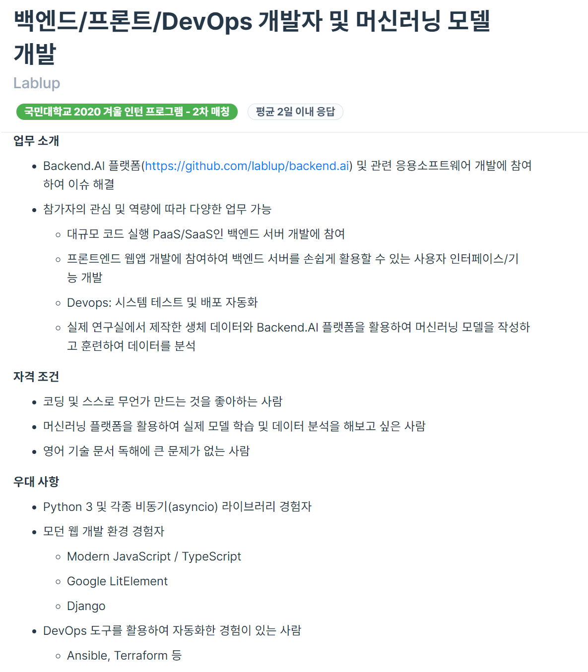 2020 Winter Internship at Lablup