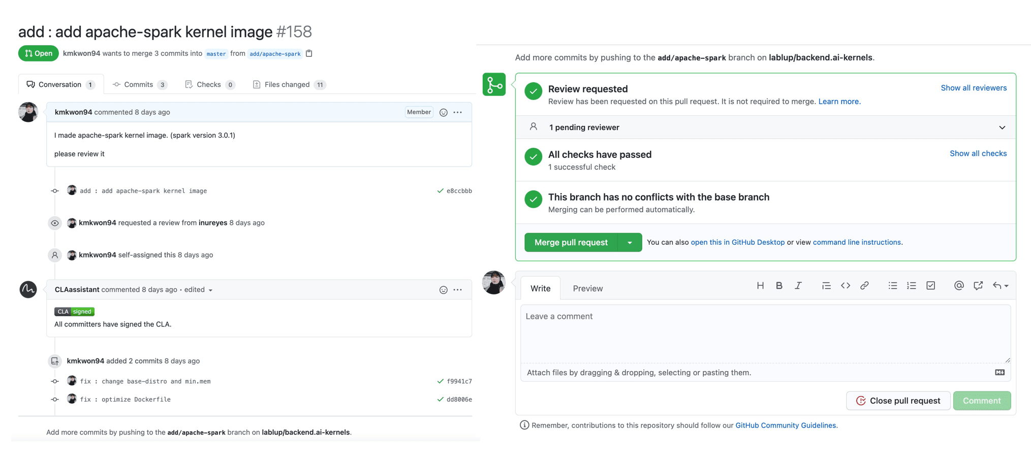 After working through all the challenges, I finally succeeded in merging the Apache-Spark kernel image I created.